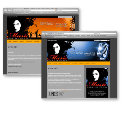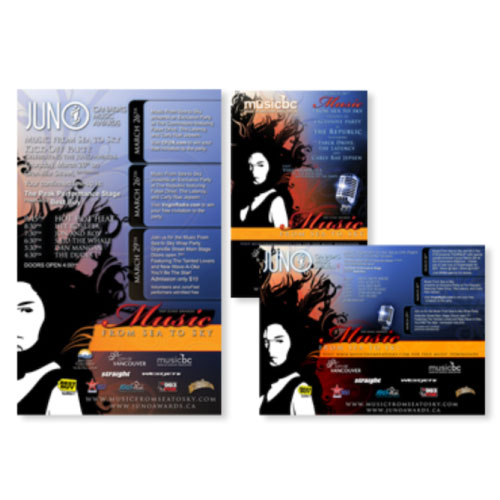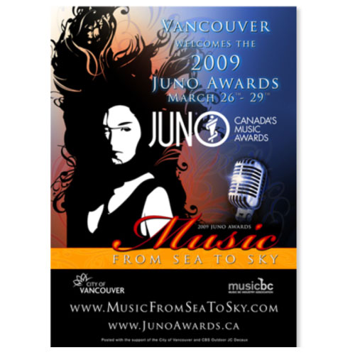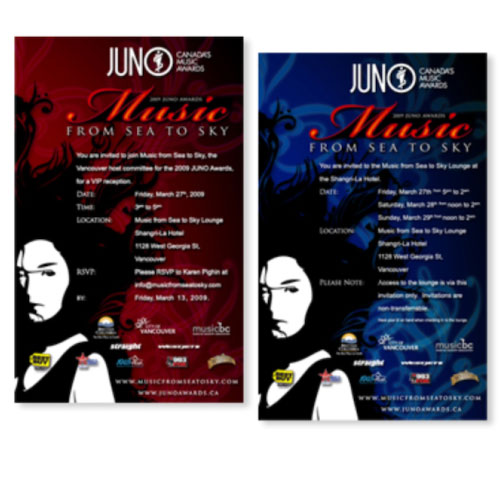 The challenge with this brand was to produce an identity that was elegant and sophisticated while also setting the stage for the numerous genres of music celebrated in the awards. Acting as the Creative Director for the 2009 Juno Awards Vancouver Host Committee, deliverables were on an international stage.